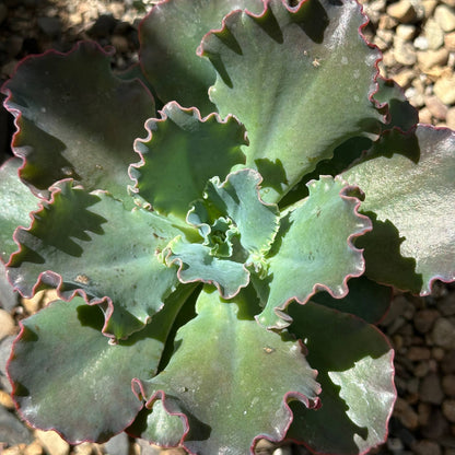 Echeveria 'Giant Blue' is a striking succulent known for its large, thick, and fleshy leaves that form a wide rosette. Its leaves have a beautiful bluish-gray color, with subtle pink or lavender hues along the edges, especially when exposed to sunlight or cooler temperatures. This variety can grow into a sizable plant, often reaching up to 12 inches in diameter, making it a bold statement piece in any garden or container. The Echeveria 'Giant Blue' is low-maintenance and thrives in bright light, well-draining soil, and minimal watering, making it ideal for succulent enthusiasts who prefer an easy-care plant with impressive visual appeal.