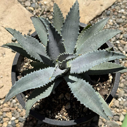 Mangave 'Silver Fox' is a stunning hybrid succulent that combines the best traits of Agave and Manfreda, resulting in a unique and eye-catching plant. Its broad, silvery-blue leaves are dusted with a powdery coating that gives it a frosty appearance, while faint purple spotting adds depth and texture. The slightly wavy, architectural foliage forms a symmetrical rosette that can reach up to 2 feet wide, making it a standout feature in containers or modern landscapes. Fast-growing compared to traditional agaves, Mangave 'Silver Fox' thrives in full sun to partial shade and well-draining soil. It's drought-tolerant, low-maintenance, and adds a bold, sculptural presence to any garden or patio space.