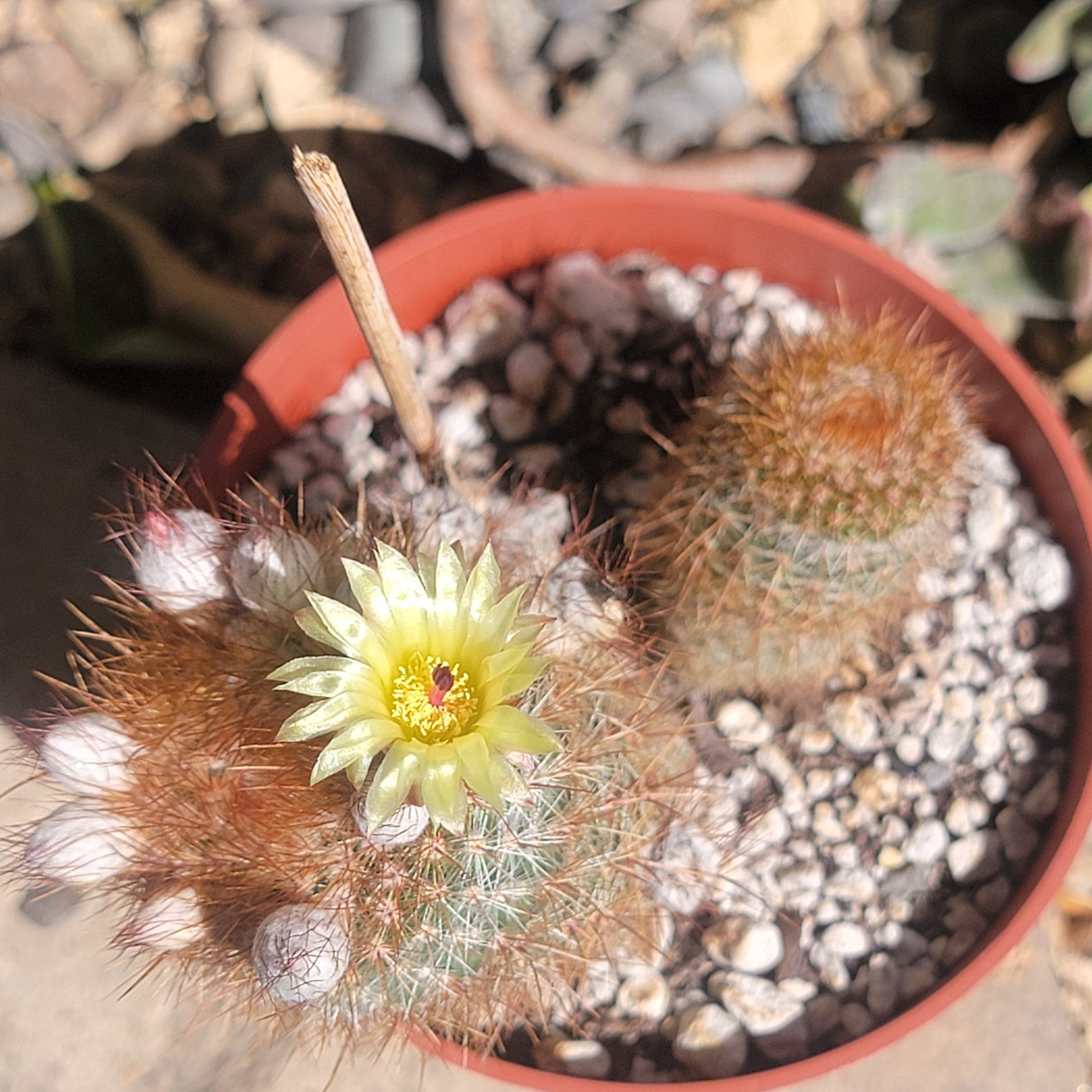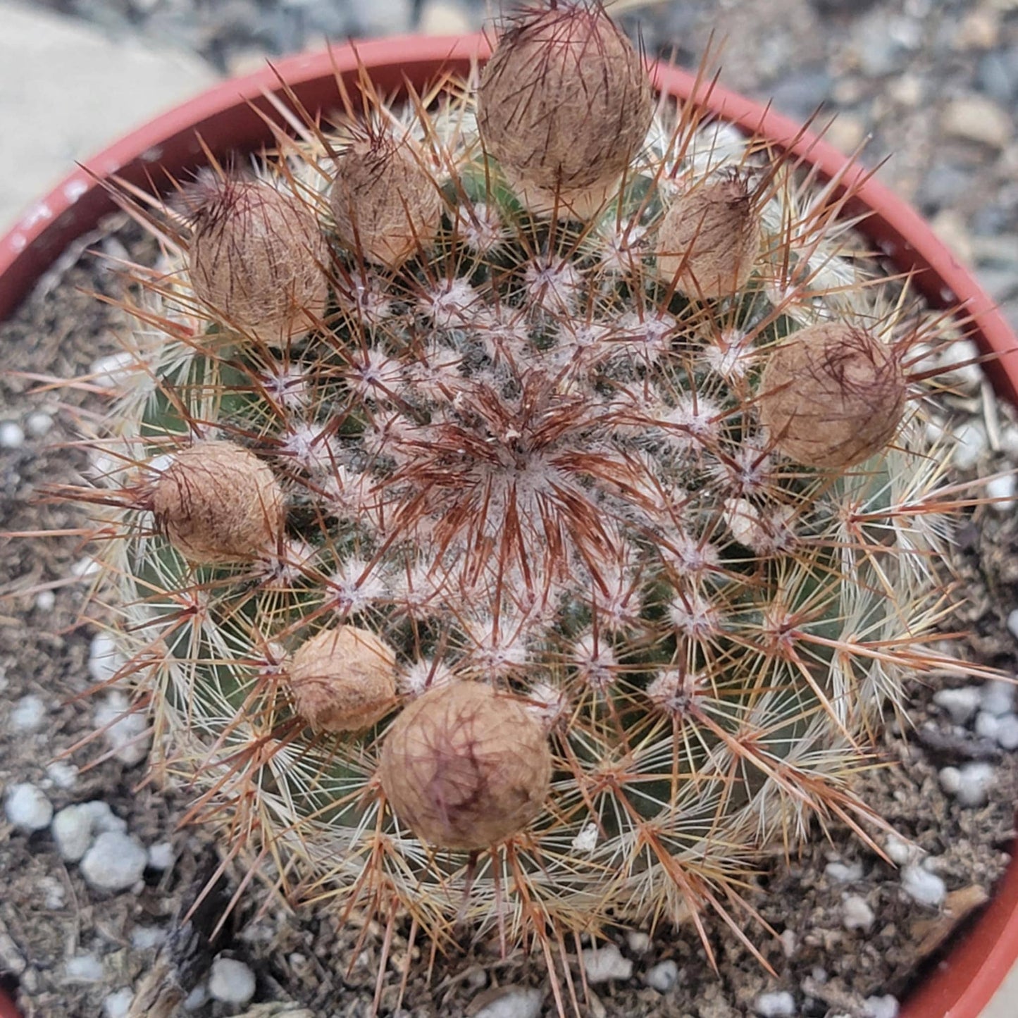 Esta variedad de cactus no sobrevivirá a una helada fuerte, pero si existe riesgo de temperaturas bajo cero, se puede llevar al interior para que crezca en el alféizar de una ventana soleada o bajo una luz de cultivo. Los cactus necesitan luz solar intensa, buen drenaje y agua poco frecuente para evitar la pudrición. Elija recipientes con orificios de drenaje y use tierra para suculentas y cactus con buen drenaje con entre un 70 % y un 80 % de arena mineral, como arena gruesa, piedra pómez o perlita. Riegue profundamente y espere a que la tierra se seque por completo antes de volver a regar.