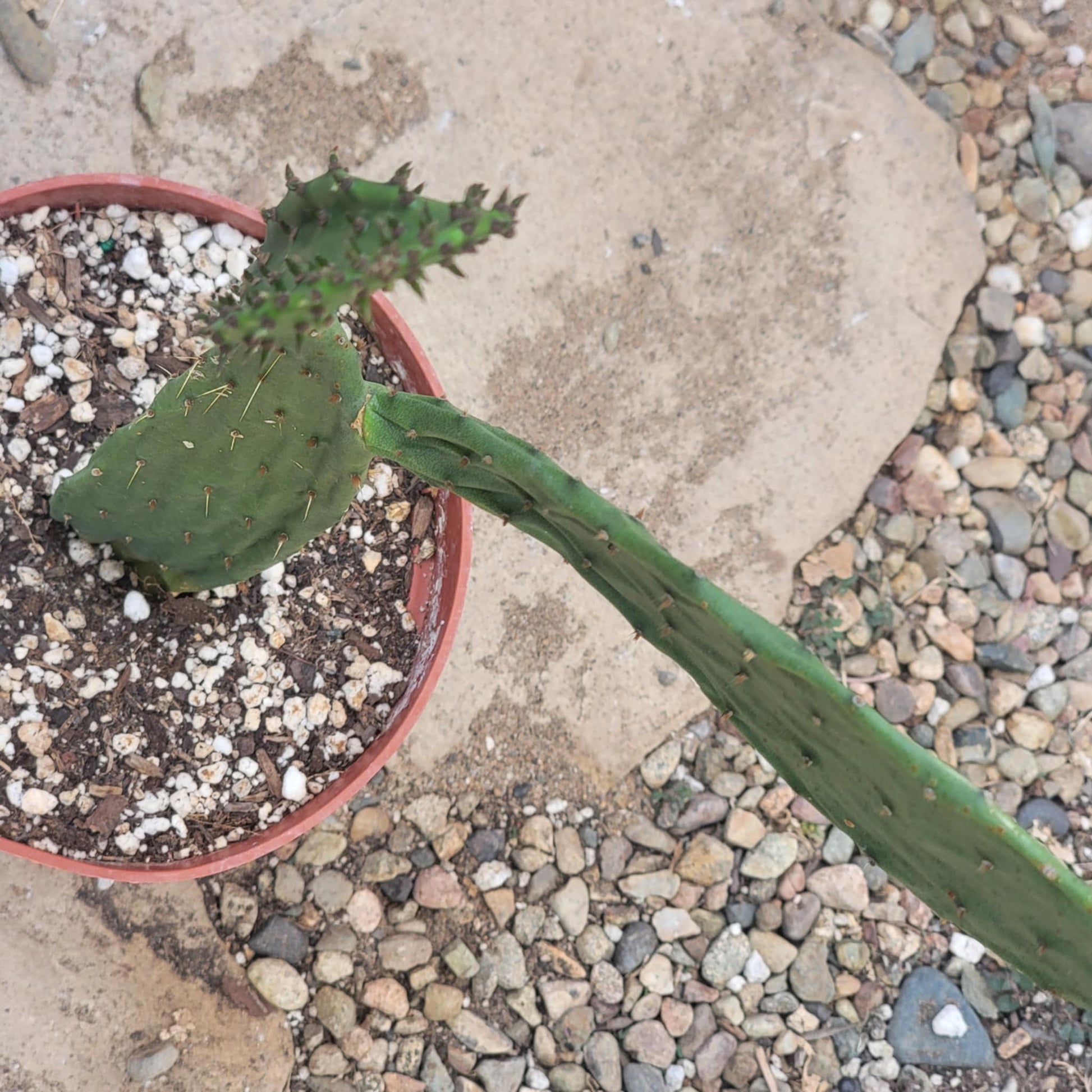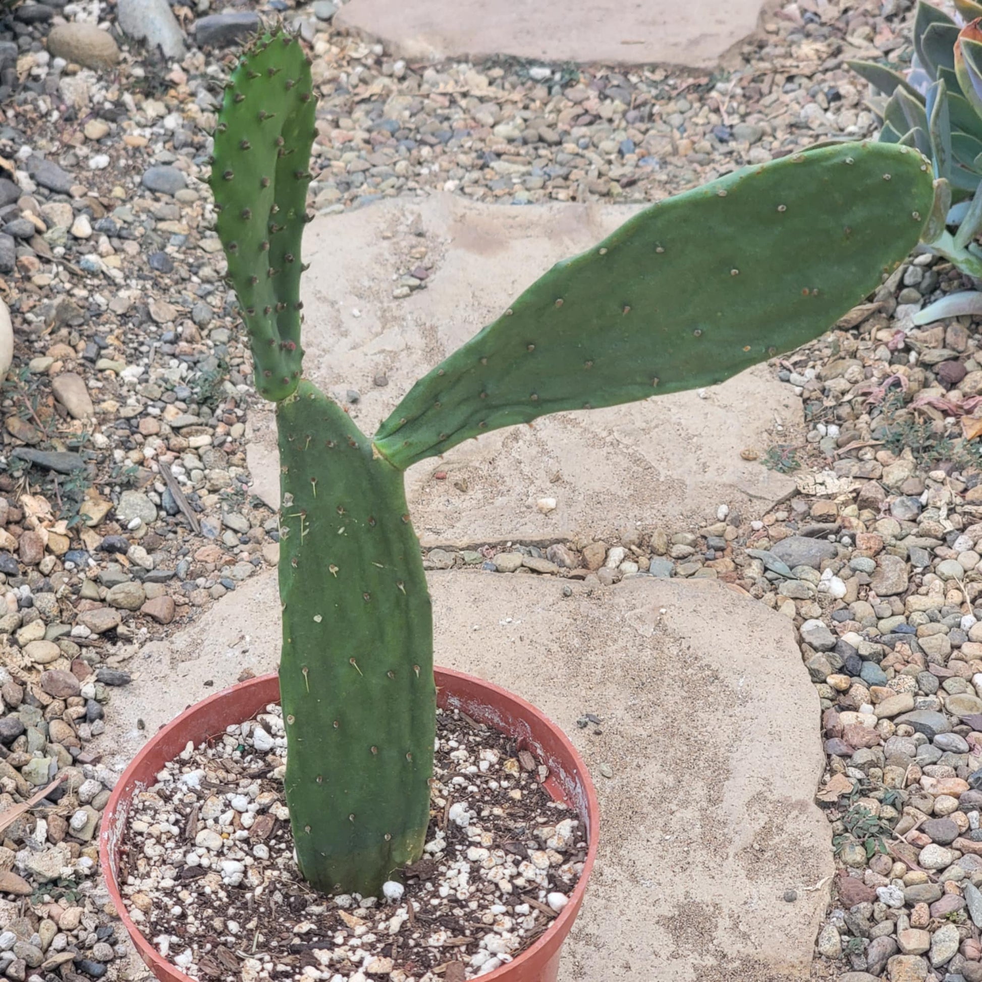 Opuntia species have glochids, which are small, barbed bristles that can easily detach from the plant. When shipping, these glochids may become loose in the box and can pierce skin and leather gloves. For safe handling, use tongs.